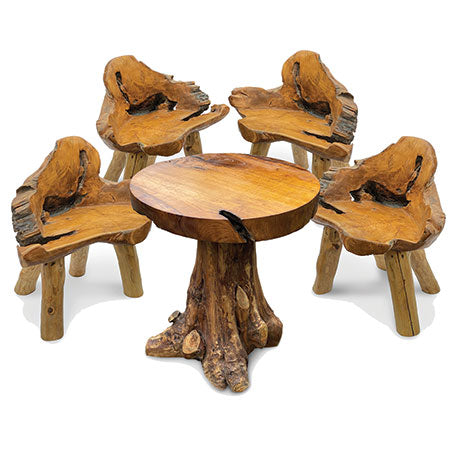 We buy from smaller, family suppliers, helping to support their local communities. Local craftspeople use recycled teak tree roots – this enables the whole tree to be used in the furniture making process, allowing replacement trees to be planted and thereby eliminating waste, creating employment and benefiting the environment. The roots are created into distinctive pieces of teak root driftwood style garden and home furniture, décor, sculptures, home accessories and much more.