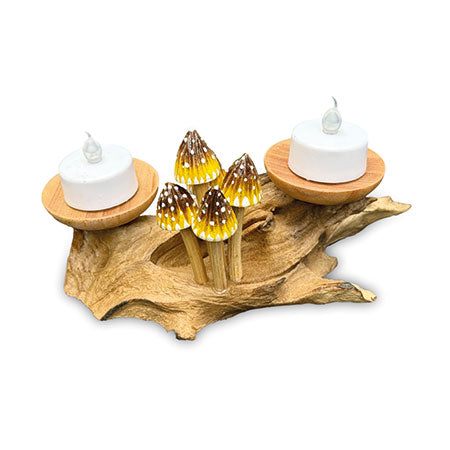 4 Pointed Yellow Cap Mushrooms with Single Candle Holder