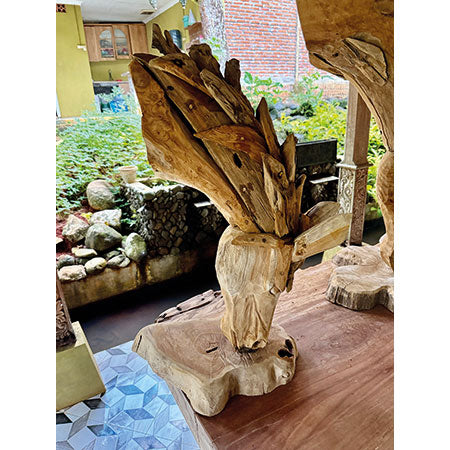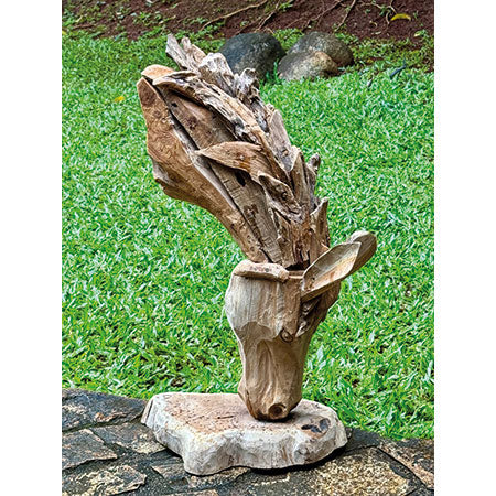 MJ753Ideal for horse lovers with smaller spaces, our grazing horse’s head is hand carved and sculpted by artists in Indonesia from teak tree roots, with a sturdy root base.