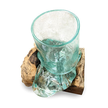 MB352Introduce some functional artwork into your home with our Glass Sculpture range. Each piece features a hand-blown glass tumbler, suitable as a desk pen holder or to hold a tealight/candle up to 5cm in diameter, moulded onto an individually selected teak root piece.