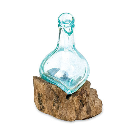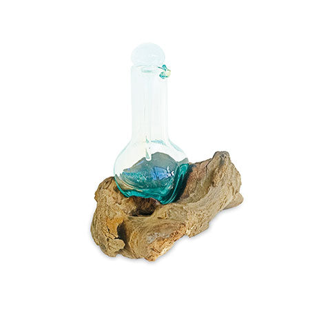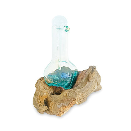 MB324Introduce some functional artwork to your home with our Glass Sculpture range. Each removable mini bottle is hand-blown and cleverly moulded onto hand-sculpted teak root pieces, as if the glass is melting into the wood, Dali-style!