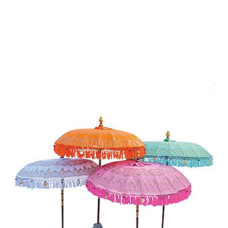 Beautiful hand-made Balinese Ceremonial Parasols - hand carved, hand printed, hand woven and hand painted by a small family business in Ubud, Bali.