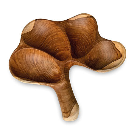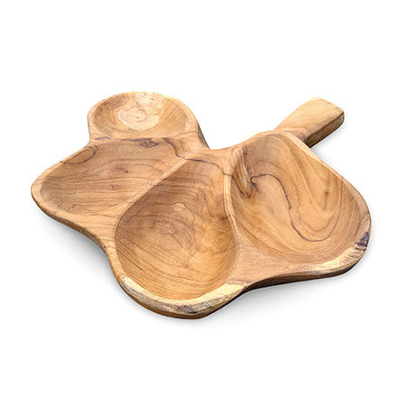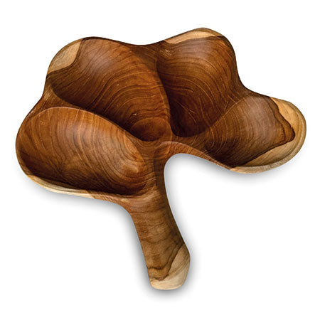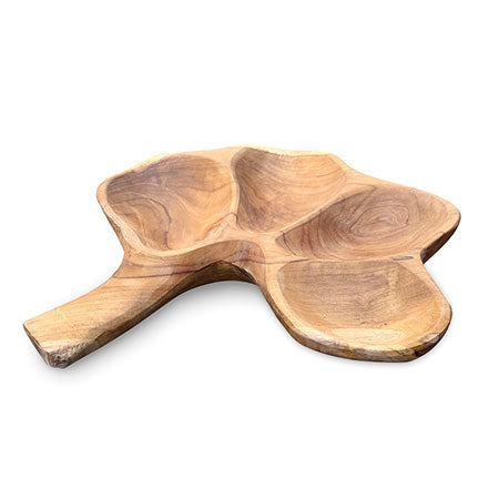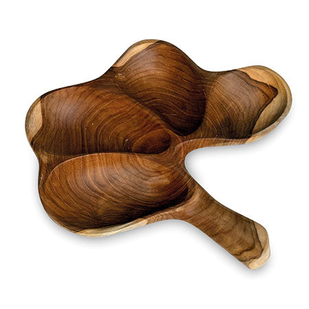 MJ750Get lucky with this 4 section bowl, hand-carved from teak root in a clover style with a ‘stalk’ handle.