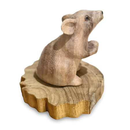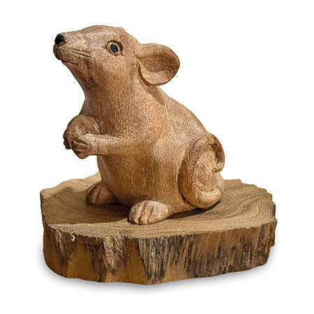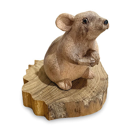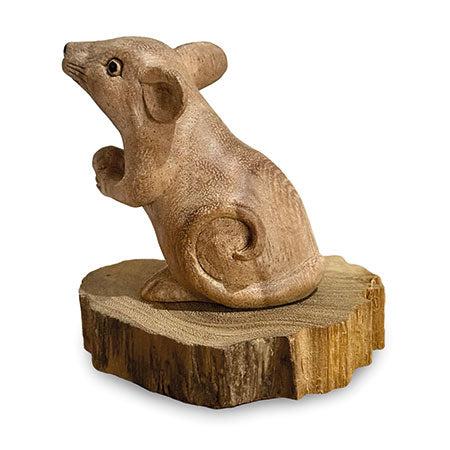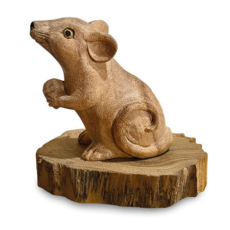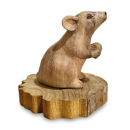 MB473Adorable little mouse, sitting up on its hind legs holding some food. Hand-carved from suar wood with charming detail.