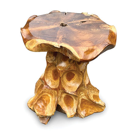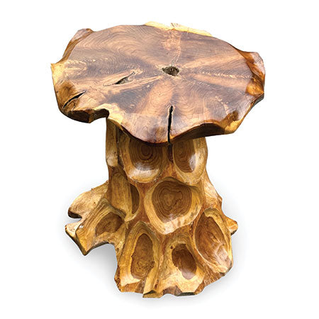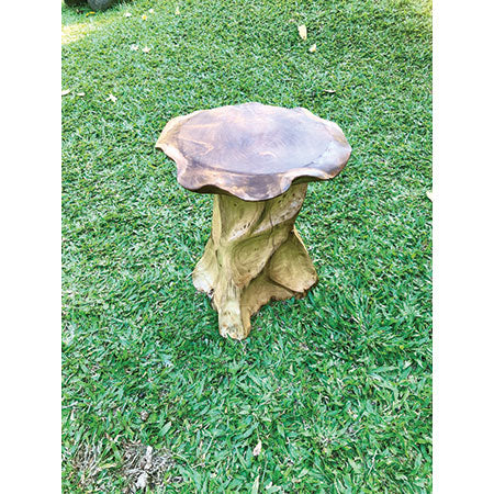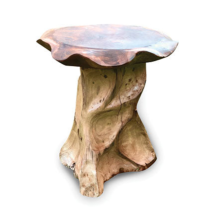 MJ705Our Lombok Mushroom Lamp Table has a hand-carved slab top and root pedestal, and it’s perfect for holding a lamp to brighten up dark corners or holding drinks and snacks in the garden.