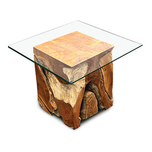 MJ19GHand carved from a solid block of teak root for an individual appearance, this lamp table is a very versatile and useful piece of furniture.