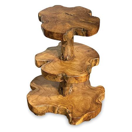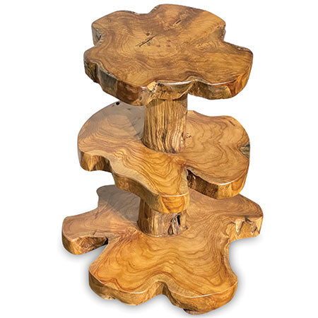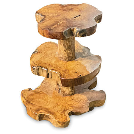 MJ533Our fabulously unusual cake stand is ideal for those who like something a little bit different on their table. Hand carved from slices of teak root and perfect for showing off your homemade cakes.