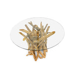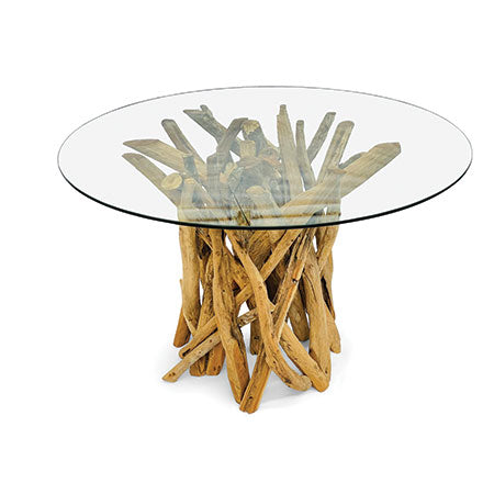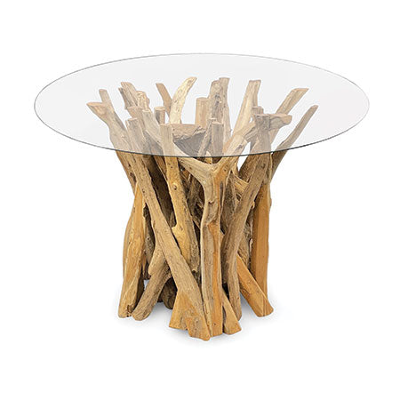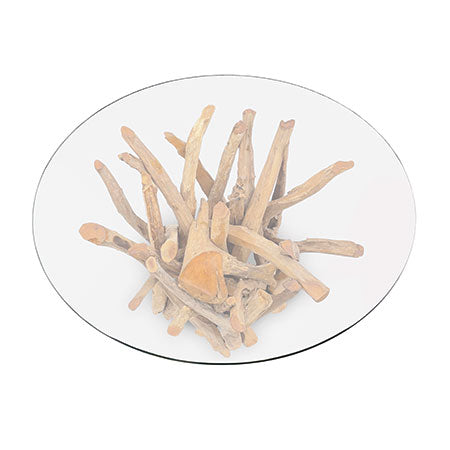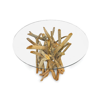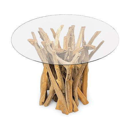 MJ514Our glass topped root dining tables really make a statement, showing off the beauty of the unique natural root base. Topped with round safety glass.