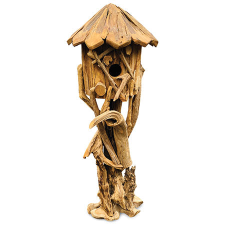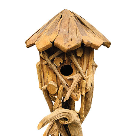 MJ613With reduced natural resources, garden birds need all the help they can get when they're house-hunting. Our stand-alone Java Bird House comes in three different sizes to give your feathered friends a tweet. It has an attractive rustic charm and blends into any small or large outdoor space. Available in H100, H150 (this size) or H200.