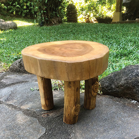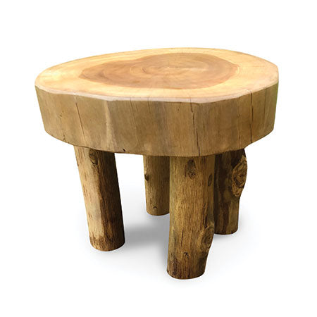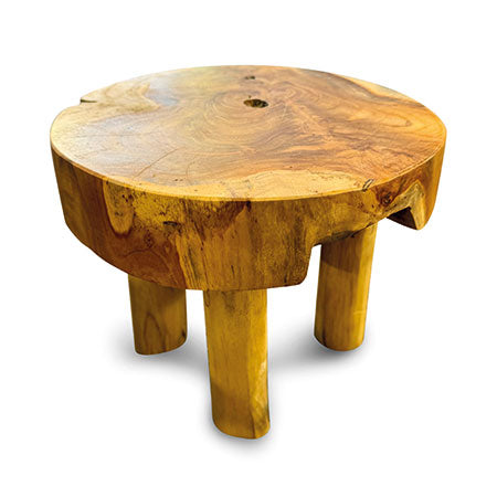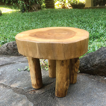 MJ716This versatile stool is topped with a planed slab of teak root and has 4 hand-carved legs. Ideal as a foot stool, a mini table to hold a lamp, snacks, flowers, or whatever takes your fancy!