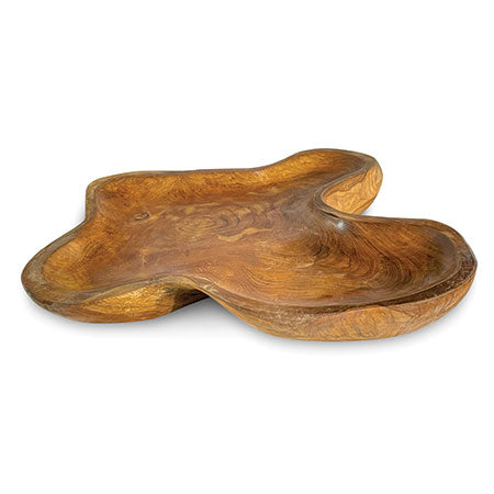 MJ56This striking tray is formed from a single slice of teak root, exposing the root's mushroom-like shape in all its natural beauty. Slightly hollowed to form a tray and ideal for holding snacks and nibbles at a rustic buffet or garden picnic. Also available in 60cm.