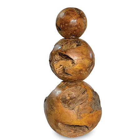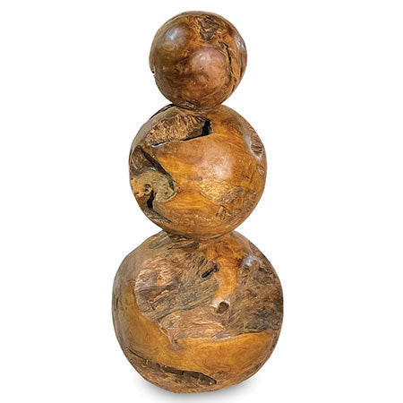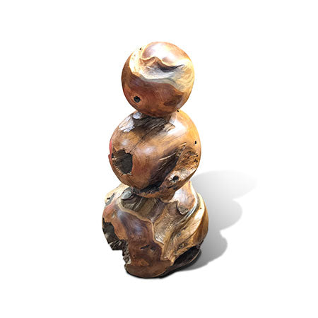 MJ540Three different sized balls balancing on top of each other - this unique sculpture is hand carved by artists in Indonesia from teak tree roots. Each one has its own individuality to make a statement in any home or garden.