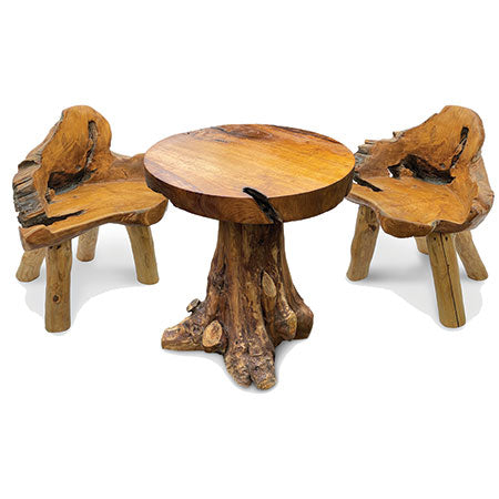 MJ13One of our classic designs, the Root Round Dining Table is hand carved from teak root and its rustic look will never go out of fashion.
