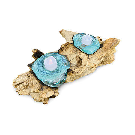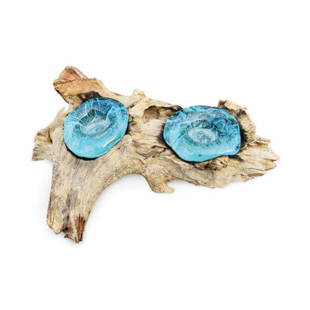 MB130Introduce some functional artwork into your home with our Glass Sculpture range. Each removeable glass candle holder is hand-blown and cleverly moulded onto individually selected teak root pieces, as if the glass is melting into the wood, Dali-style!
