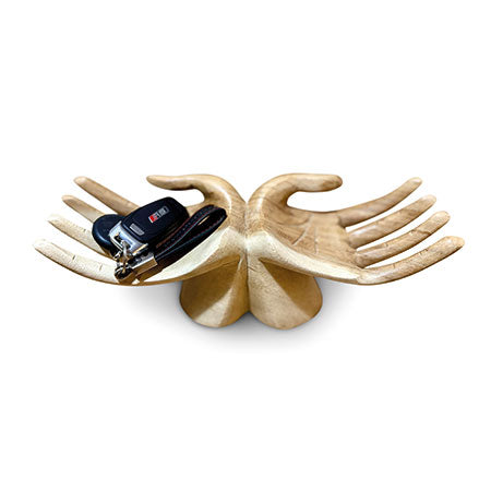 MB416Two hand-carved hands held together to form a sharing bowl for snacks or fruit. Also available in W20cm, W25cm and W40cm.