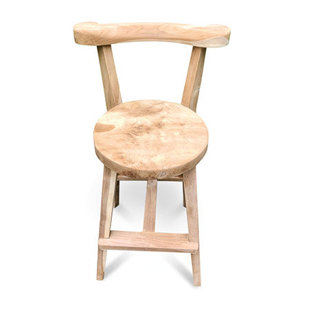 MJ762Hand-carved teak bar stool in a classically rustic design, with a stylish back rest for a more comfortable perch. Suitable for indoor or outdoor use.