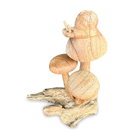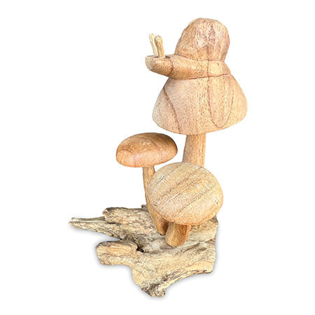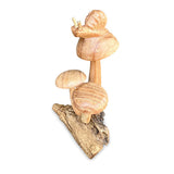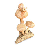 MB456Cute little snail, crawling over a cluster of mushrooms growing from a teak root base. Hand-carved from sustainable albasia wood.