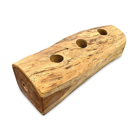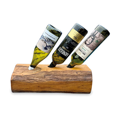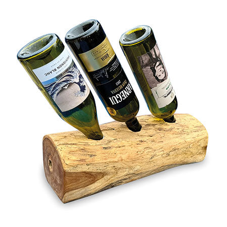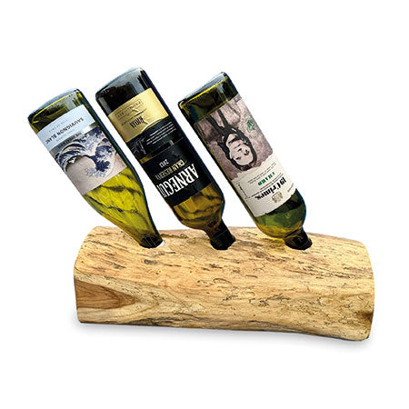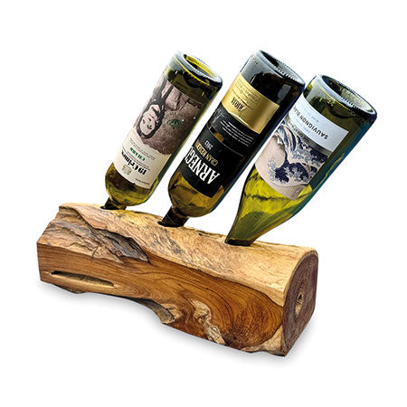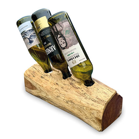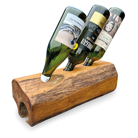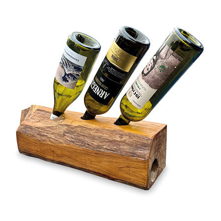 MJ730The simple ideas are always the best. Teak root is hand-carved into a log shape with holes drilled in the top to hold your favourite bottles. Available for 2, 3 and 4 bottles.
