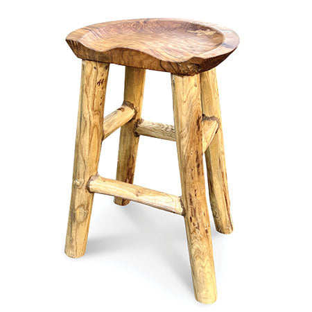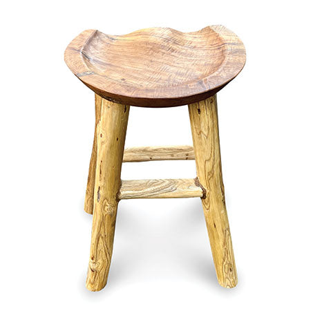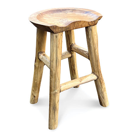 MJ666Hand carved from teak root with a shaped seat for a more comfortable perch, this bar stool is perfect for the bar or anywhere around the house and garden.