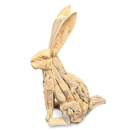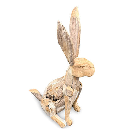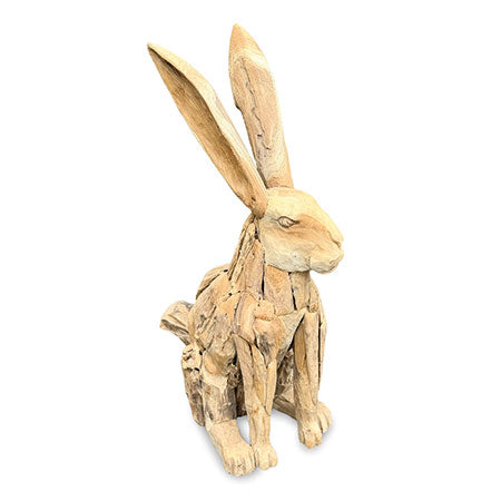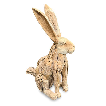Our charming hare has been hand-carved and hand-sculpted from individual teak roots and would look fabulous in an indoor or outdoor setting. Each one of these sculptures has its own unique style and character.