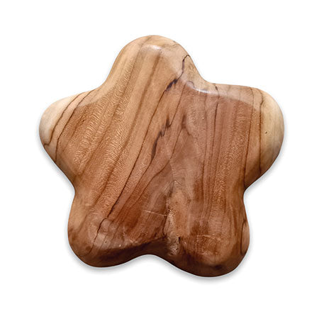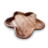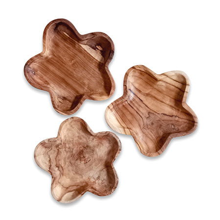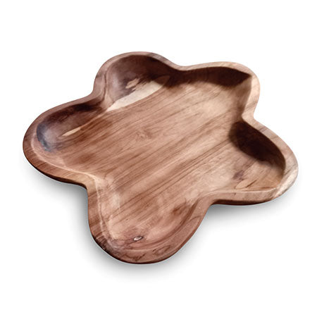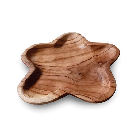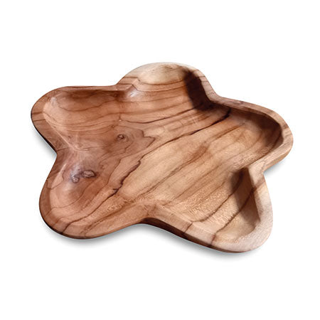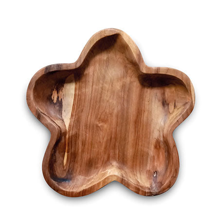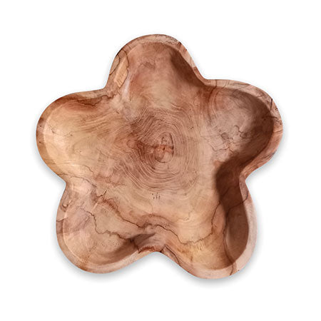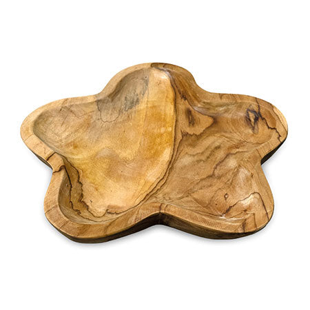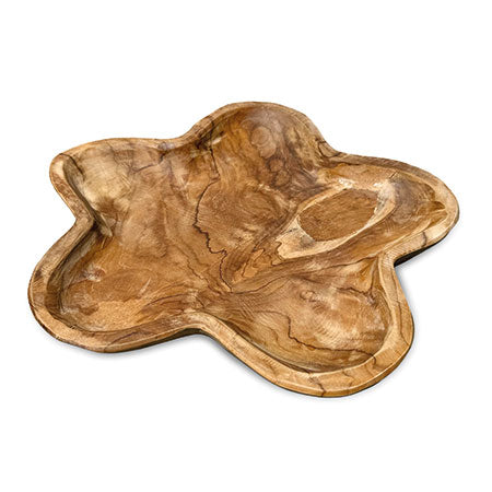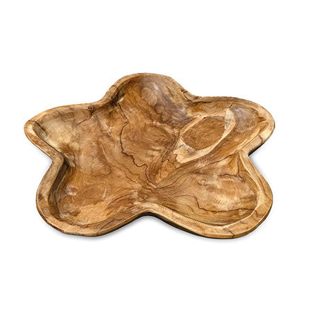 MSJ25Hand-carved, star-shaped teak root bowl with raised rim.