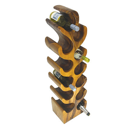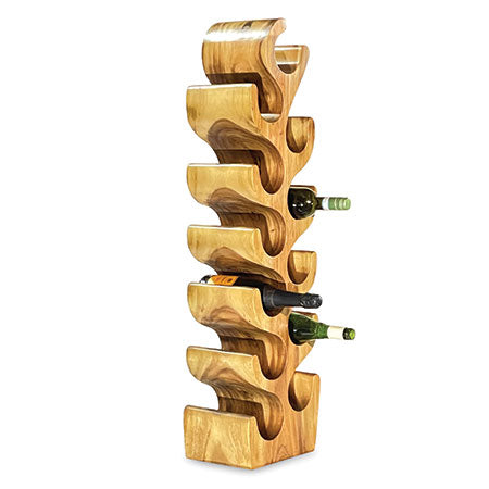 MJ128A single piece of hardwood, hand-carved in the shape of a tree, forms an ingenious wine rack with the bottles nesting in the branches.