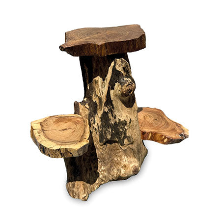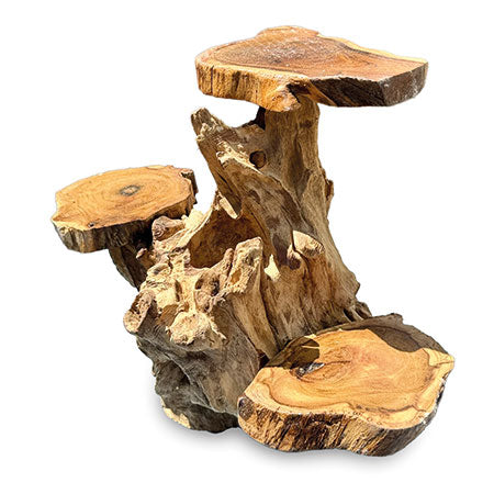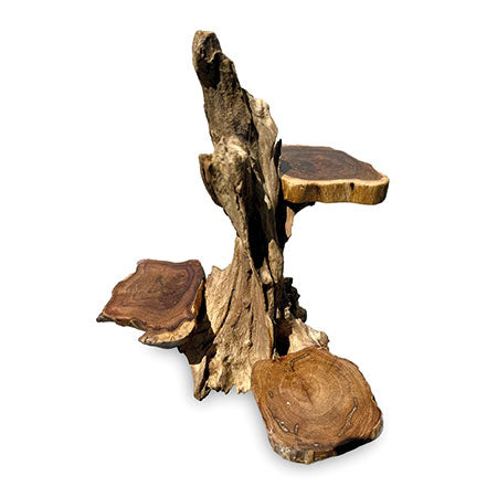 MB464Dinky and versatile mini teak root free-standing shelf unit, only 24cm high. Natural root base with three hand-carved shelves and a veritable multitude of uses.